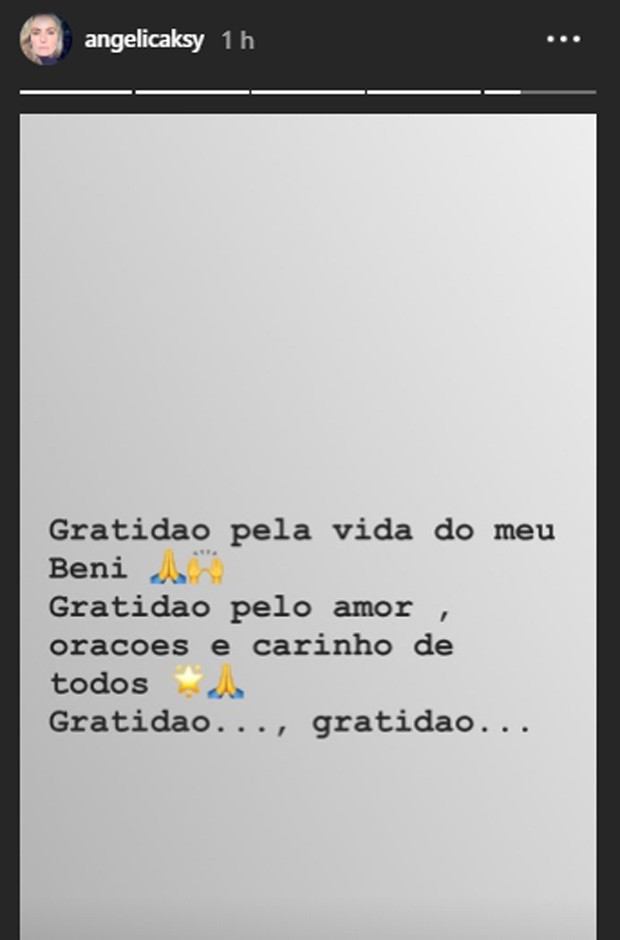 Angélica usou seu Instagram para postar um texto emocionante sobre maternidade após o grave acidente sofrido pelo filho do meio, Benício, de 11 anos. Ele se acidentou enquanto praticava wakeboard em Ilha Grande, na Costa Verde do Rio, na tarde de sábado (22). O garoto foi submetido a uma neurocirurgia no Hospital Copa Star, na Zona Sul do Rio de Janeiro, no domingo (23)