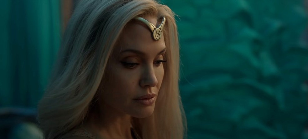 Angelina Jolie como Thena em "Eternos"A Marvel lançou o primeiro trailer do longa em maio de 2021. No filme, Angelina Jolie interpreta Thena, uma heroína conhecida pela força, velocidade e resistência.
