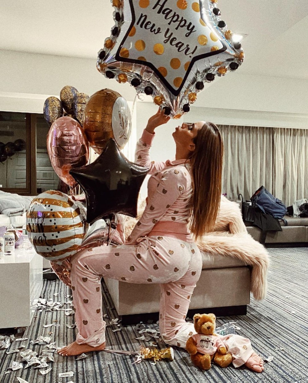 Após usar look colado no corpo e com brilho no palco da Times Squares para celebrar a virada de 2021, Anitta mostrou que as primeiras horas do novo ano foi com pijama rosa para atrair amor. Relembre aqui: