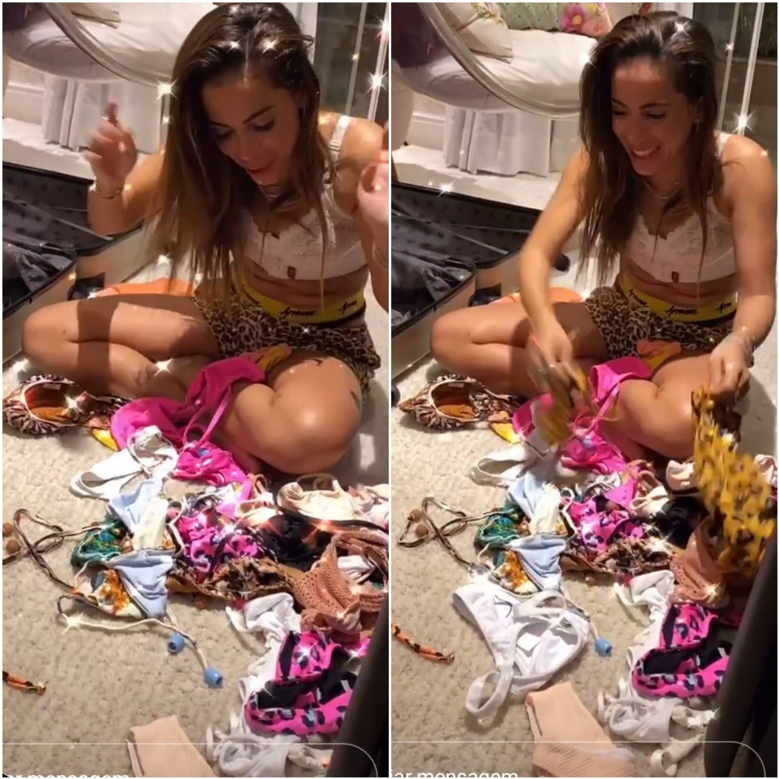 Anitta já fez a mala para ficar confinada em uma ilha em Angra dos Reis no reality show que ela mesma criou, que começa nesta sexta (12). A cantora contou que vai levar apenas biquínis e roupão. "Vou passar o dia de biquíni e roupão (risos). Fez frio é top, fez calor é topless. Regra na ilha", contou ela, que ainda levou alguns acessórios para o sexo. "Vou levar vibrador, lubrificante e camisinha. Vai que a gente transa."