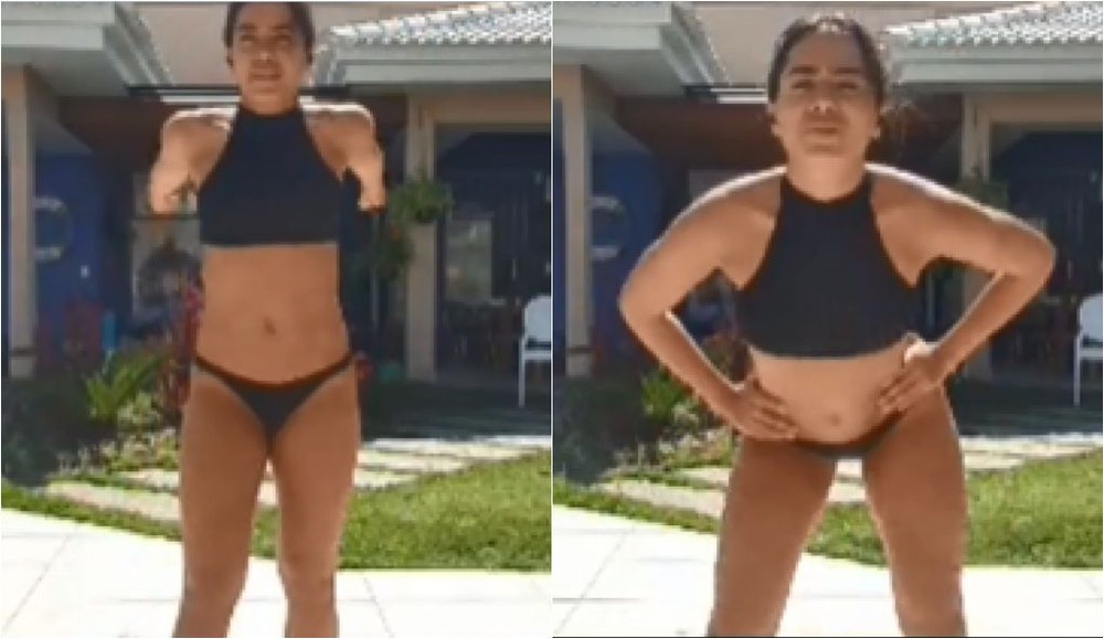 Anitta já usou um maiô supercavado e um biquíni para malhar em casa durante a quarentena. Desta vez, a Poderosa apostou novamente em um modelo de biquíni, em tom todo escuro, para treinar com o personal Rodrigo Ruiz, no domingo ensolarado do Rio de Janeiro, onde mora. As informações são do GShow.