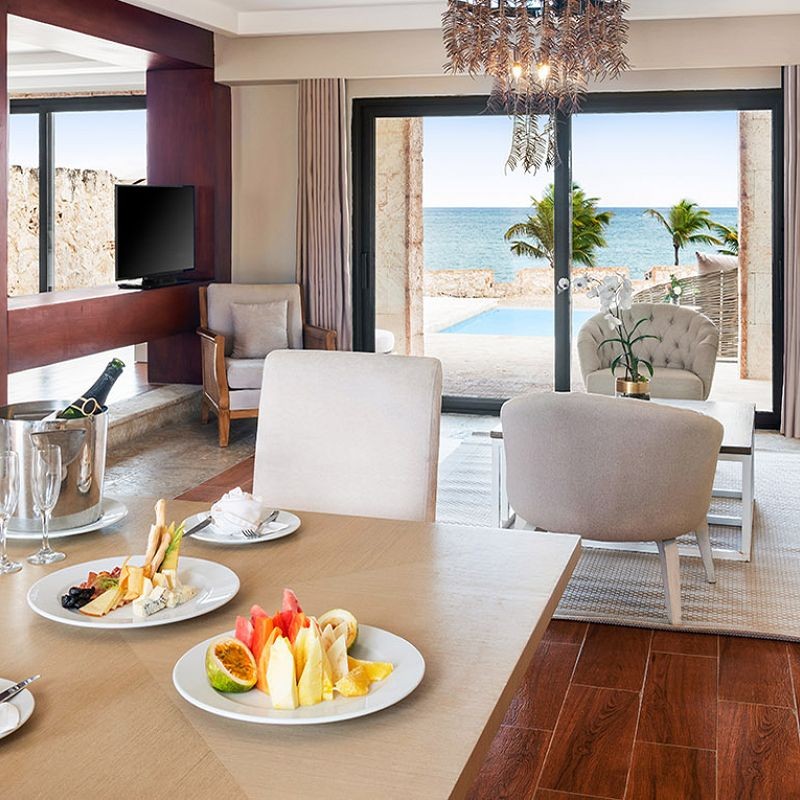 Os hóspedes podem escolher entre 5 restaurantes à la carte e buffet com mesas internas ou ao ar livre, bem como serviço de quarto 24 horas. Os restaurantes próximos do hotel, que cercam a impressionante marina de Cap Cana, também oferecem uma variedade de seleções culinárias que vão desde saladas orgânicas a frutos do mar frescos.