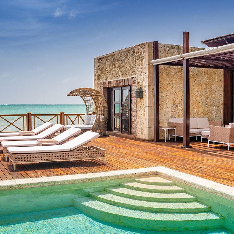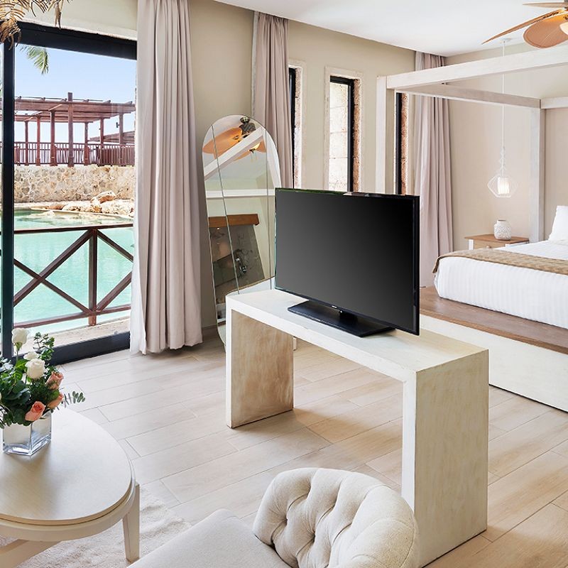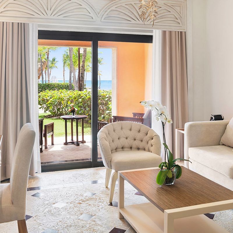 As suítes e vilas são projetadas para complementar a arquitetura colonial predominantemente espanhola da propriedade, com ricos detalhes em madeira, móveis de rattan tropical e elegantes banheiros em coral. Todas as acomodações possuem varandas ou terraços mobiliados, televisões de tela plana, minibares que são reabastecidos diariamente, máquinas de café expresso, roupões de banho e chinelos de seda e banheiros com pias duplas.