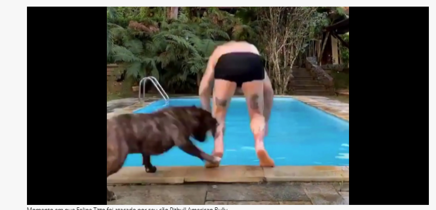 Pitbull mordeu a perna do ator de forma acidental durante o banho de piscina |
