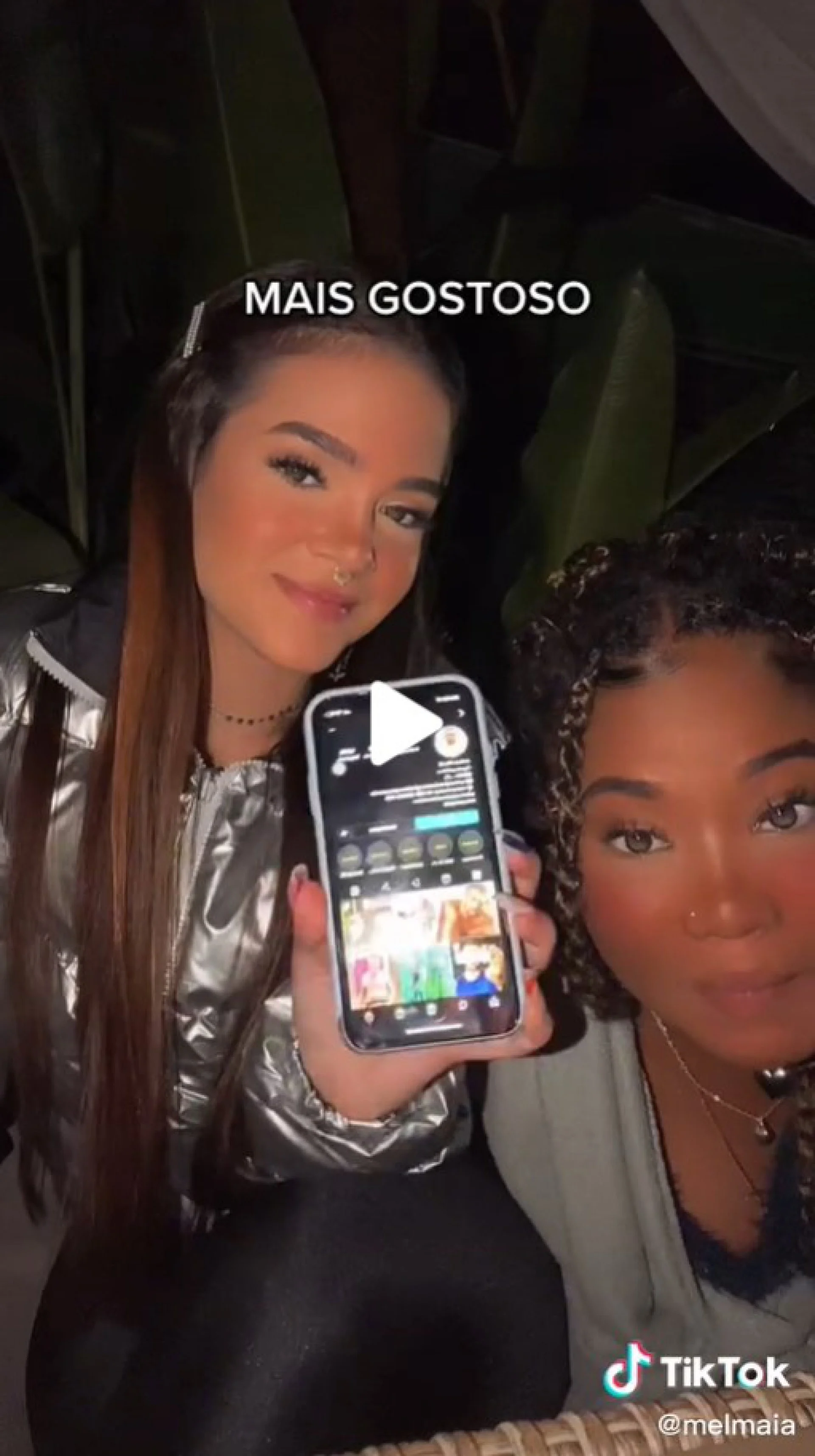 Mel e a amiga, no Tik Tok, em brincadeira sobre ficadas. O nome do ex BBB Arthur Picoli foi mencionado pela atriz