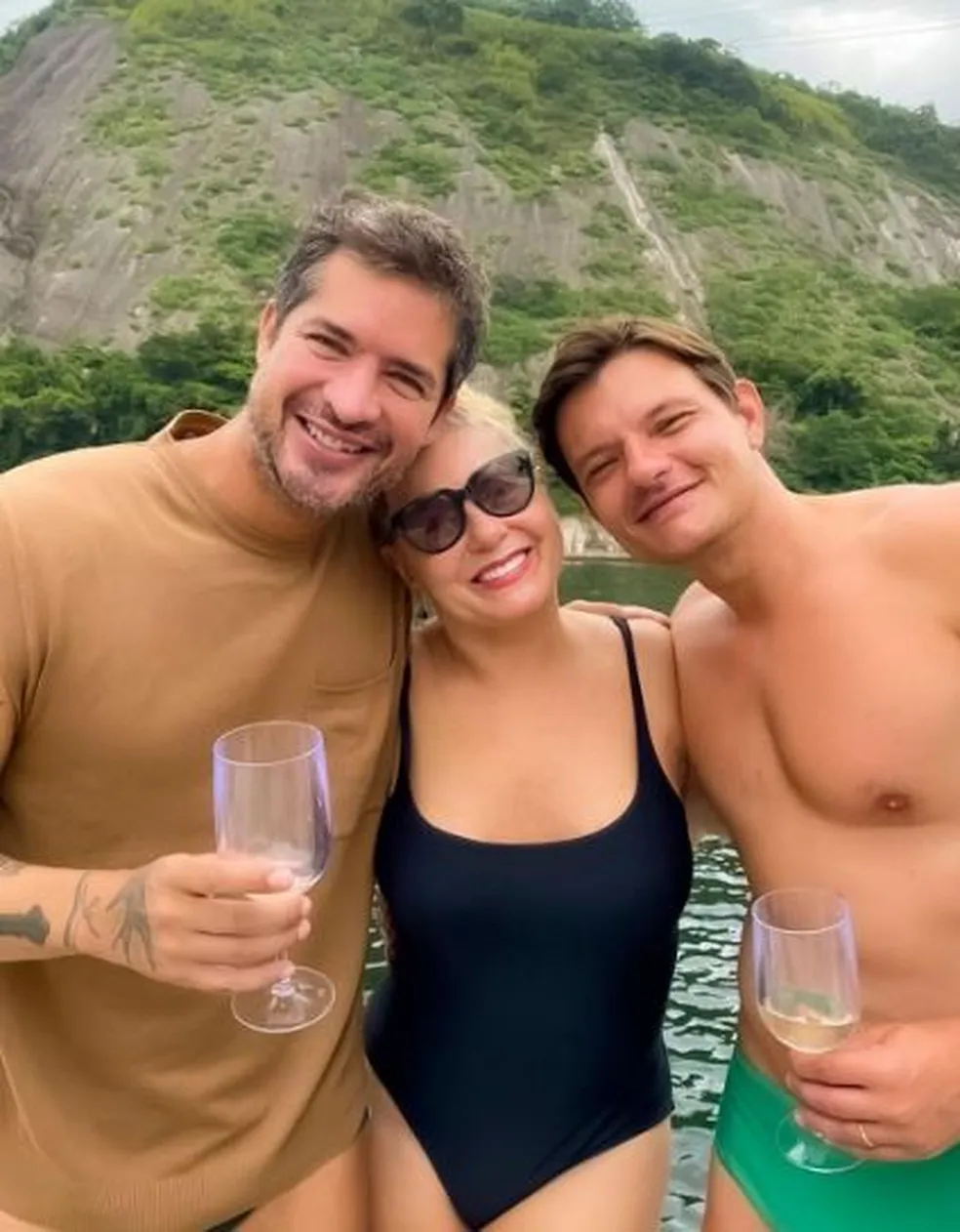Atriz ao lado dos amigos Luciano Borges e Adilson e numa lancha. (Foto: Rep Instagram)