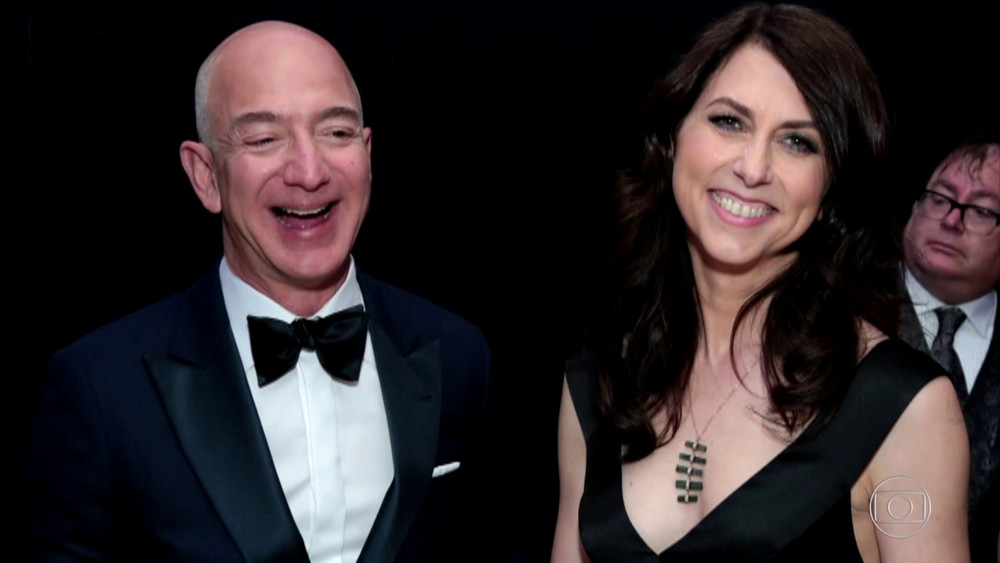Bezos e MacKenzie Scott — Foto: Reprodução TV Globo