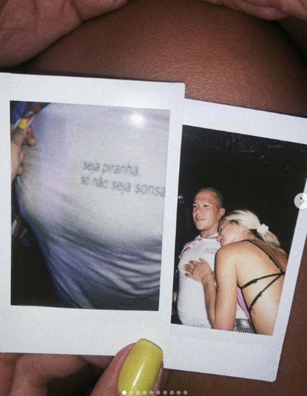 Na imagem polêmica, a atriz destacou a frase “Seja piranha, só não seja sonsa”, estampada na camiseta de um homem. Ainda no clique, a famosa aparece abraçada ao anônimo.