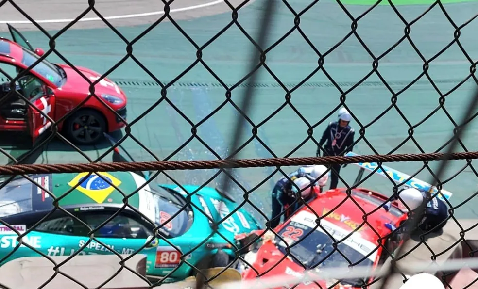 Caio Castro sofre acidente horas antes do GP do Brasil de Fórmula 1 (Foto: Reprodução)O artista participava da Porsche Carrera Cup. Pouco depois da largada, o piloto colocou o carro entre Raijan Mascarello e Nelson Marcondes Filho no fim da reta, com a tentativa de chegar ao “S” do Senna em vantagem.