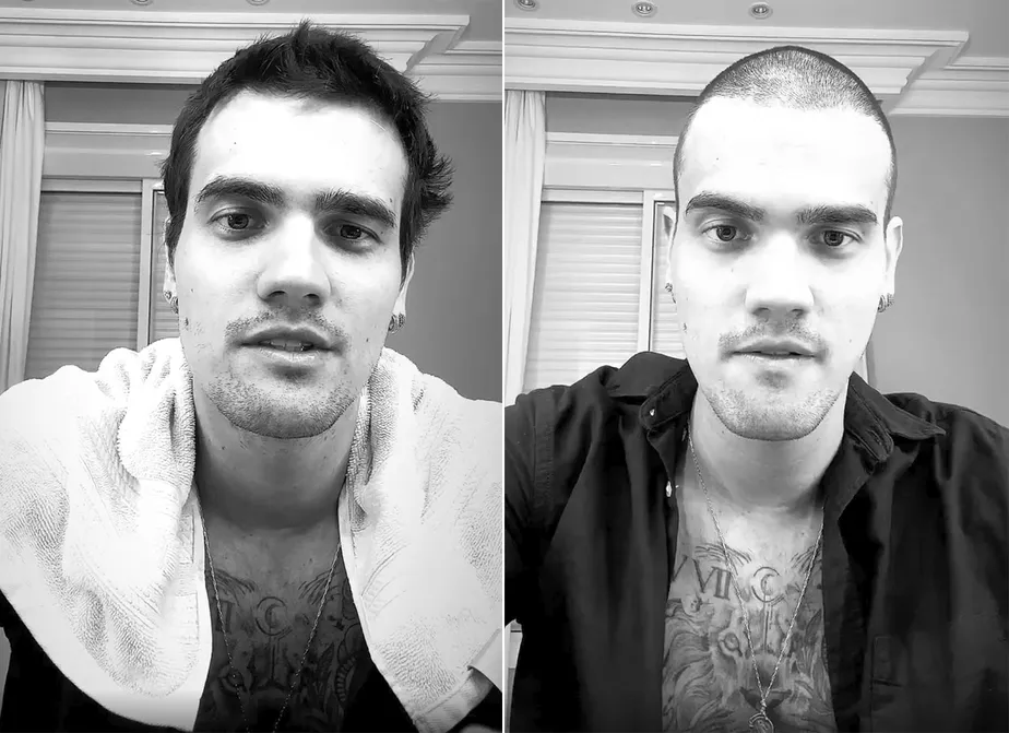 O cantor Breno, da dupla com Caio César, mostrou nas redes sociais que raspou a cabeça durante o tratamento contra o câncer. O sertanejo realiza quimioterapia como parte do tratamento contra a doença e raspou os cabelos entre as sessões, que causam queda dos fios.