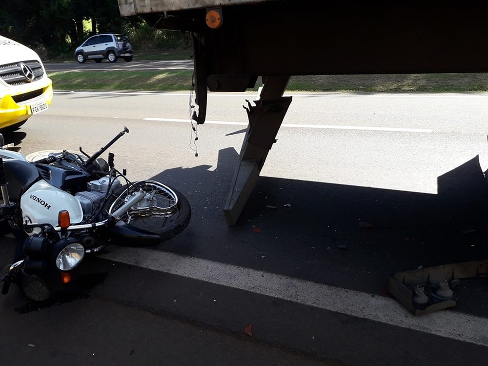 Moto de cantor colidiu contra caminhão na SP-344 — Foto: Sagui Florindo/ Gazeta de Aguaí
