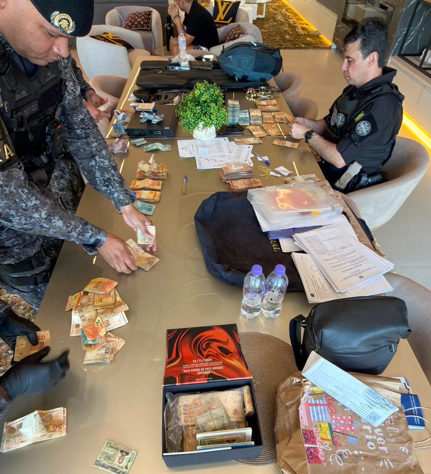 Entre os materiais recolhidos estão grandes quantias em dinheiro vivo, relógios de luxo, bolsas de grife e carros importados. Segundo a PF, os itens fazem parte de um patrimônio suspeito de ter sido adquirido com recursos de origem ilícita.