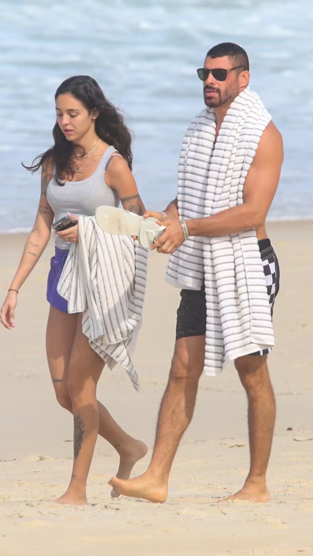 Cauã Reymond apareceu ao lado de Luana Mandarino em um momento de proximidade na praia de São Conrado. Na areia, os dois dividiram a mesma toalha, trocaram beijos e permaneceram juntos durante todo o tempo em que estiveram no local. Antes de irem embora, Cauã ajudou Luana a se vestir.