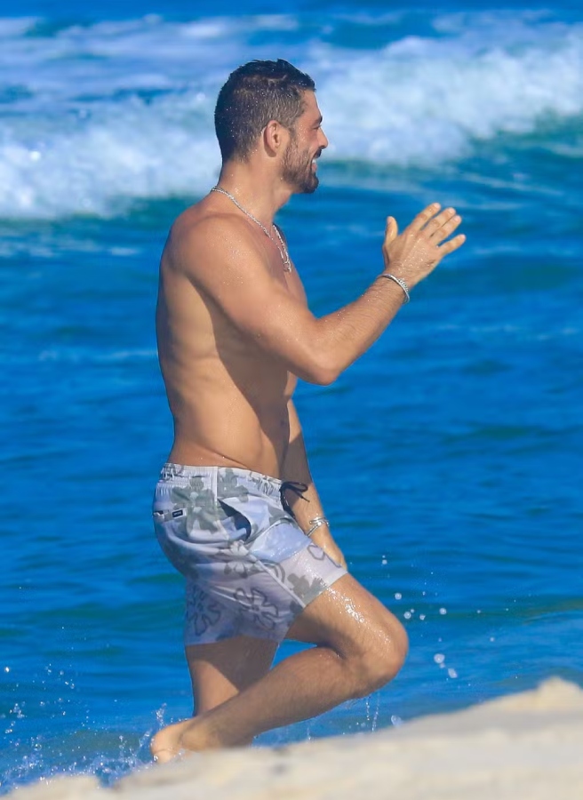 O ator Cauã Reymond, de 44 anos, foi clicado curtindo uma manhã de sol nesta quarta-feira (7), na praia da Barra da Tijuca, Zona Oeste do Rio de Janeiro. Ele, que é o protagonista da nova versão de Vale Tudo, relaxou no mar e aproveitou para caminhar tranquilamente pela orla, onde atendeu os fãs que pediram fotos.