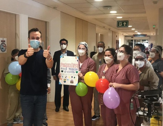 “Alta! Vou pra casa! Tô muito feliz. Obrigado, meu Deus, muito obrigado. Nossa Fé não falha. Obrigado, amor da minha vida @anaclauduarte por ficar comigo o tempo todo, enfrentando também a Covid e cuidando de mim. Obrigado, gente amada, por todas as orações, por toda a torcida, por todas as mensagens, por todo o apoio. Foram 10 dias no hospital e a alegria de voltar pra casa não tem tamanho. Obrigado, @recordtvoficial e todos os meus colegas e amigos que me apoiaram diariamente. Ainda terei muitos agradecimentos a fazer e sigo na recuperação em casa, muito feliz! Minha família e meus amigos, em oração o tempo todo, a minha gratidão não tem tamanho. Obrigado!”, escreveu ele na legenda.
