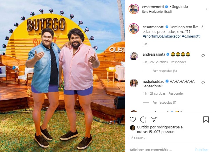 Sertanejos fizeram meme com short usado por Gusttavo Lima - Foto: Reprodução/Instagram