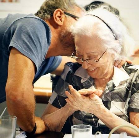 Breno Silveira com Fernanda Montenegro no ensaio do filme "Dona Vitória"