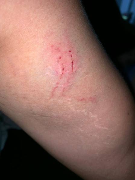Depois da agressão, Célio relata que ouviu deboches de um taxista pelo fato de o agressor ser motorista de aplicativo. Com diversas escoriações, eles foram ao hospital e depois liberados. As vítimas vão registrar a ocorrência depoimento na manhã desta quinta-feira. Vítima mostra um dos ferimentos Foto: Arquivo pessoal
