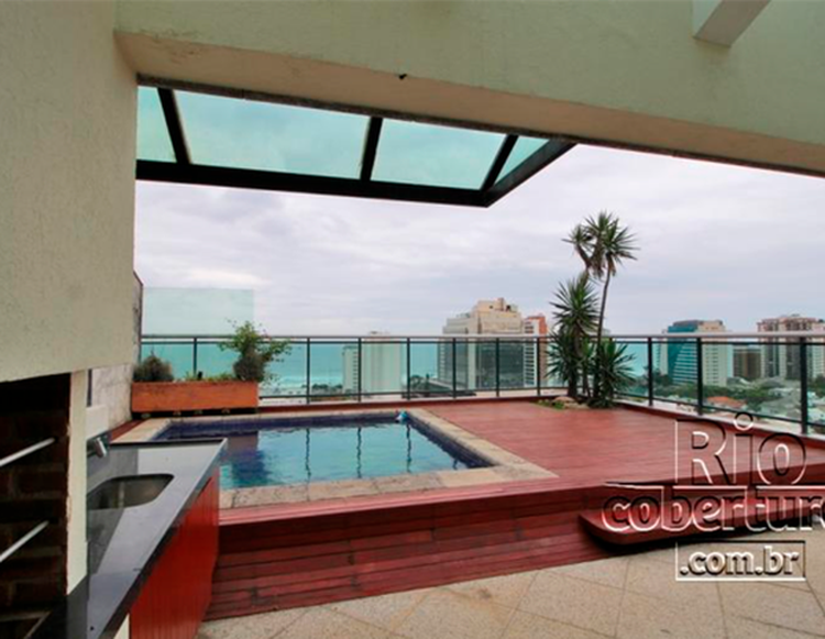 O apartamento tem dois andares, varanda fechada com cortina de vidro, salão multiambiente, lavabo, roupeiro, duas suítes com sacada, cozinha, copa, despensa, suíte de funcionários e área de serviços, closet, banho com hidro e bay window com vista livre para a reserva e o mar; terraço com deck e piscina, bancada com churrasqueira e banheiro.