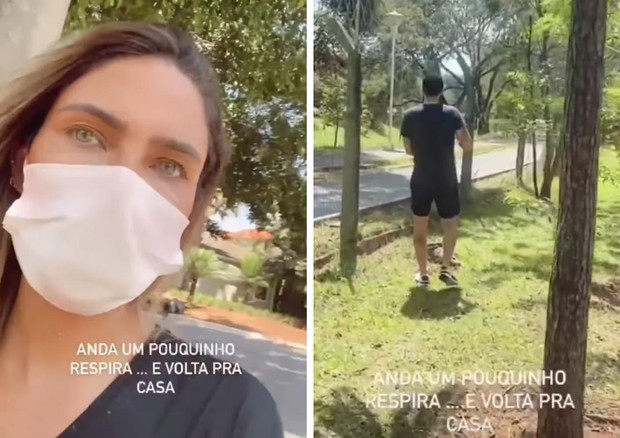 E seguiu, afimando que a caminhada seria feita em uma área aberta do condomínio, e que eles não teriam contato com outras pessoas: "Aqui onde a gente anda, não ficamos em contato com ninguém. É tudo aberto. A gente também não coloca a mão em nada. Só anda um poquinho na sombra, senta um pouquinho... A Lolo [filha dela] tem suado bastante, mas estamos caminhando aí pra uma cura. Anda um pouquinho, respira e volta pra casa".
