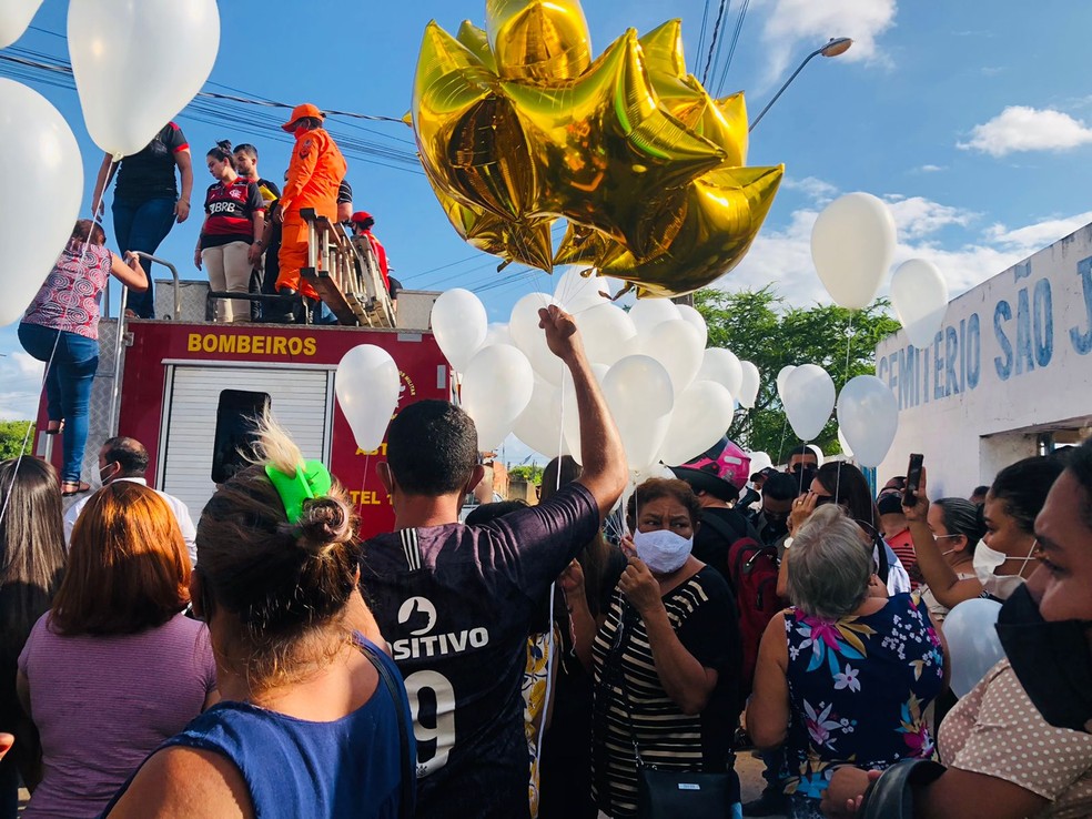 O cortejo até o cemitério São João Batista foi seguido por centenas de pessoas, dentre eles, um grupo de pedal amador da cidade. Balões brancos e dourados foram entregues às pessoas que acompanharam o carro dos Bombeiros até o cemitério.