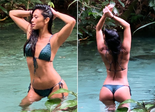 Danni Suzuki mostrou, em seu Instagram, um pouco da viagem ao Jalapão. Na manhã desta sexta-feira (8), a atriz compartilhou uma série de fotos em que aparece de biquíni aproveitando um banho de rio e a natureza local. As informações são da Quem.