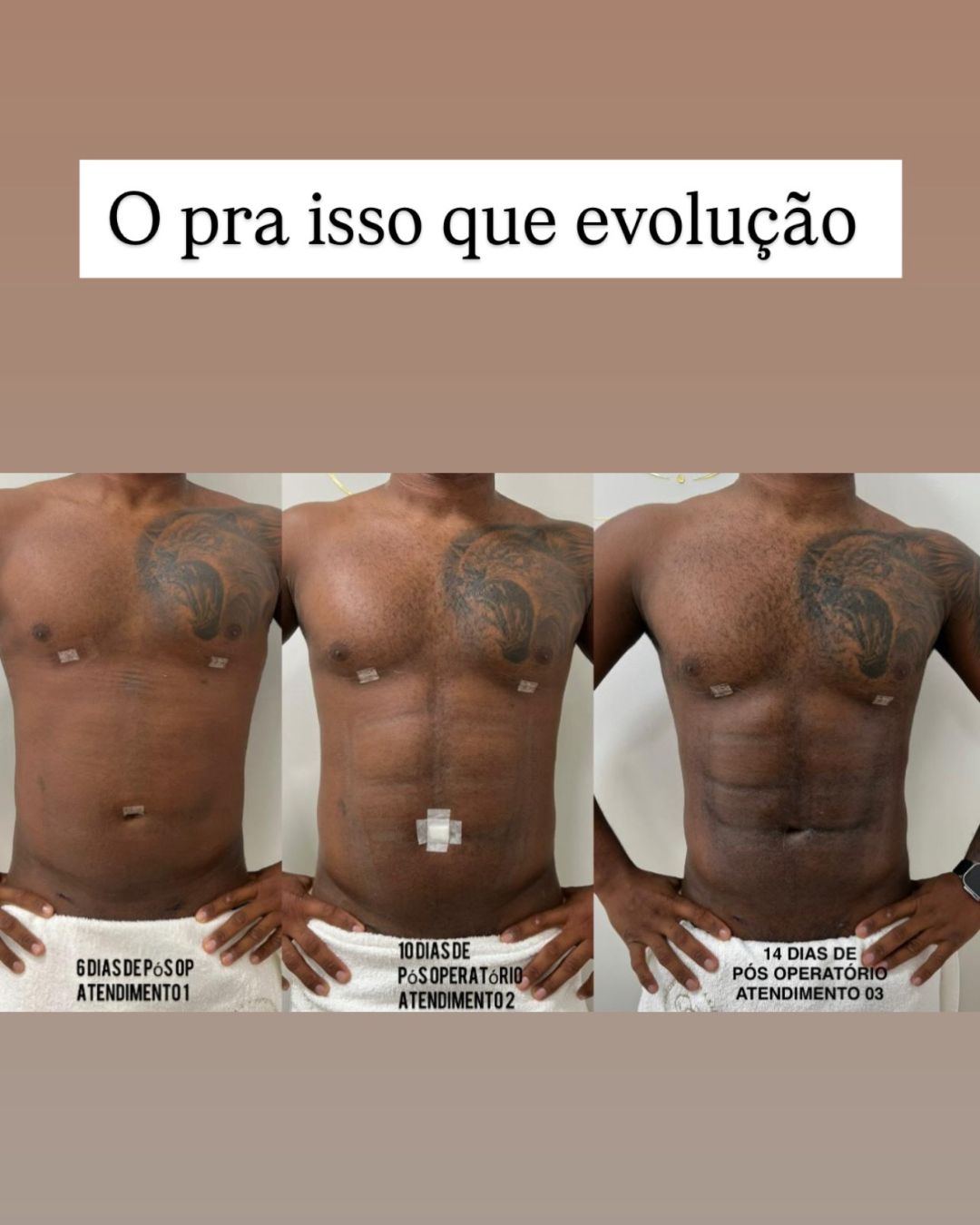 Davi Brito, de 22 anos, mostrou aos seus seguidores o estado de sua barriga após passar por uma lipoaspiração HD. Cerca de um mês depois do procedimento, o vencedor do BBB 24 publicou em suas redes sociais imagens do abdômen em diferentes momentos da recuperação: seis, dez, quatorze e vinte e seis dias após a cirurgia.