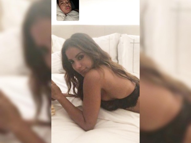 Anitta foi flagrada de lingerie na cama conversando com o amigo David Brazil por uma chamada de vídeo neste domingo (17).