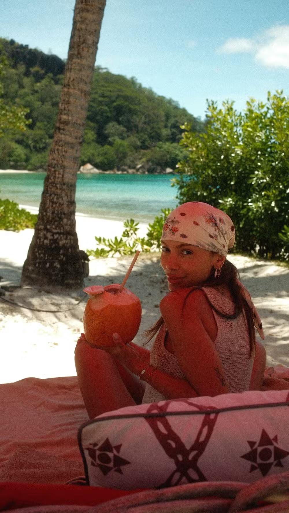 Anitta está aproveitando a paradisíaca Ilha Socotra, no Iêmen, para onde viajou nos últimos dias. Nesta segunda-feira (13), a cantora compartilhou novos registros. Em uma das imagens, ela aparece curtindo uma praia isolada com água de coco e sombra à beira-mar.