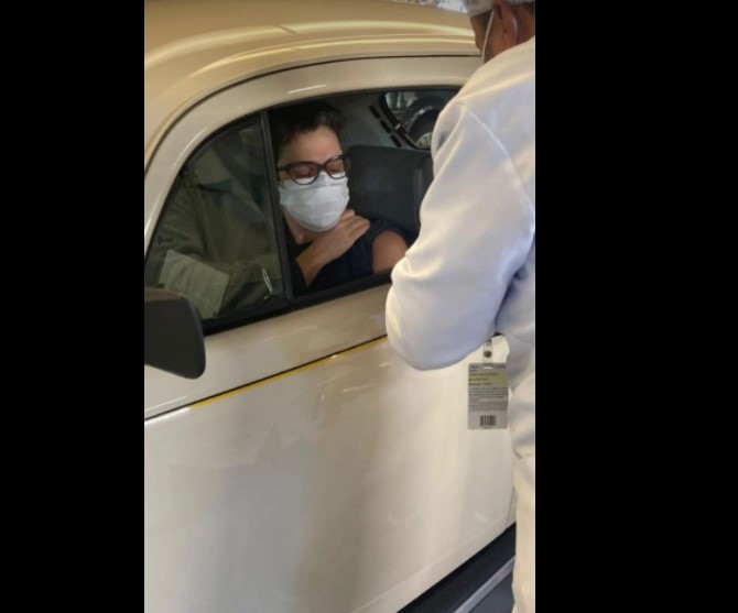 Muita gente ficou a olhar o veículo da apresentadora que chamou a atenção do público presente no drive. No Instagram, ela fez questão de mostrar o dia que recebeu a vacina e comemorou com seus seguidores.