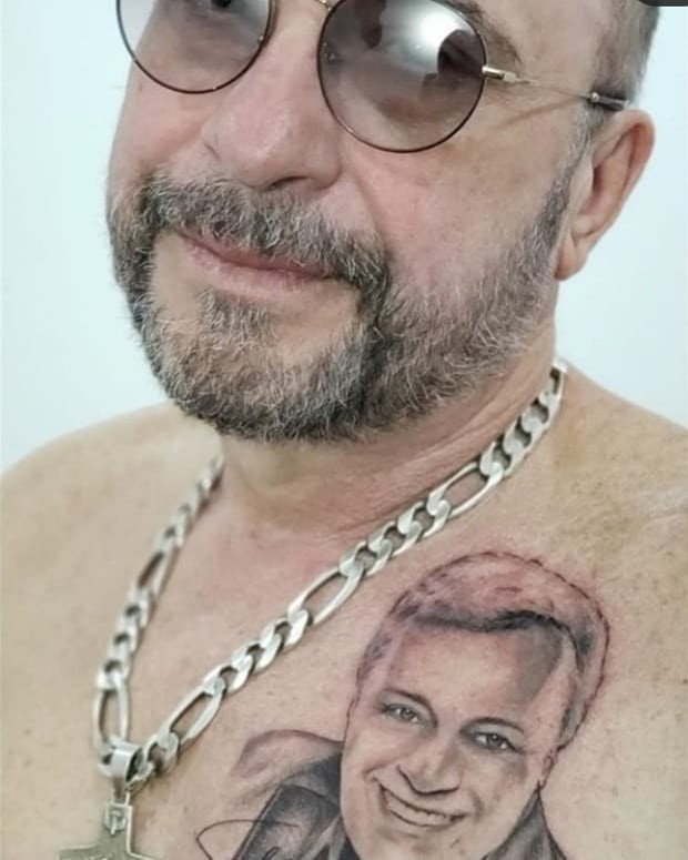 Walter Wanderley, mais conhecido compo Goiabinha, tatuou o rosto de Gugu Liberato em seu peito. O diretor de TV foi amigo do apresentador por mais de 40 anos e ficou abalado com sua morte, no último 22 de novembro, após uma queda em sua casa, em Orlando. As informações são da Quem.