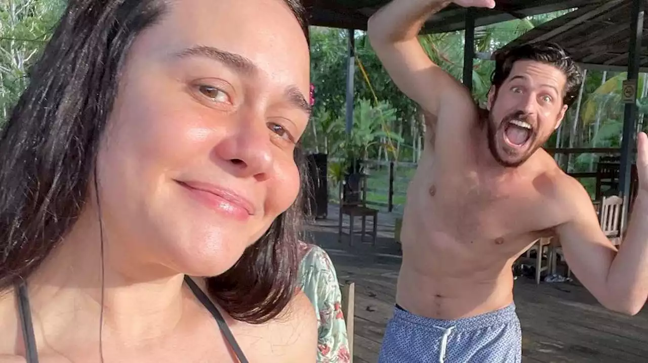 Discretos! Namorado de Marco Pigossi acompanha o ator em gravações no Pará
