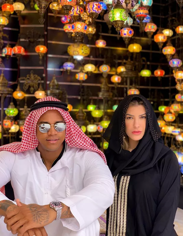 Léo ainda chegou a brincar sobre o momento à la árabe do casal. "Minha Jade", brincou ele, referindo-se à personagem vivida por Giovanna Antonelli em O Clone, novela exibida entre 2001 e 2002, e que trazia um núcleo árabe.