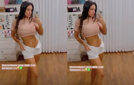 Em postagem recente no Instagram, a mineira compartilhou com os seguidores a barriga sequinha após um mês do fim do programa. "Desinchaço pós BBB com sucesso", comemorou na postagem.