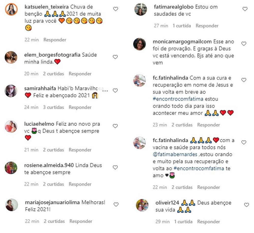 Desejando uma pronta recuperação, os fãs não demoraram a fazer elogios e mandar mensagens positivas à apresentadora: "Esse ano foi de provação. E graças a Deus você está vencendo. Beijos até ano que vem", escreveu uma. "Com a sua cura e recuperação em nome de Jesus e sua volta em breve ao Encontro. Estou orando todo dia para isso acontecer, meu amor", desejou outra. "Estou com saudades de você", disse mais uma.