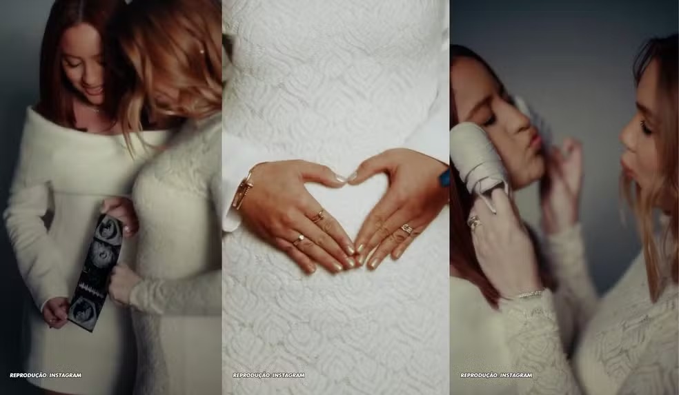 O casal anunciou a gestação na última quarta-feira (11), também pelas redes sociais. Na publicação, as duas comemoraram o novo capítulo da família. “E agora somos três! O nosso maior sonho está a caminho!”, disseram.