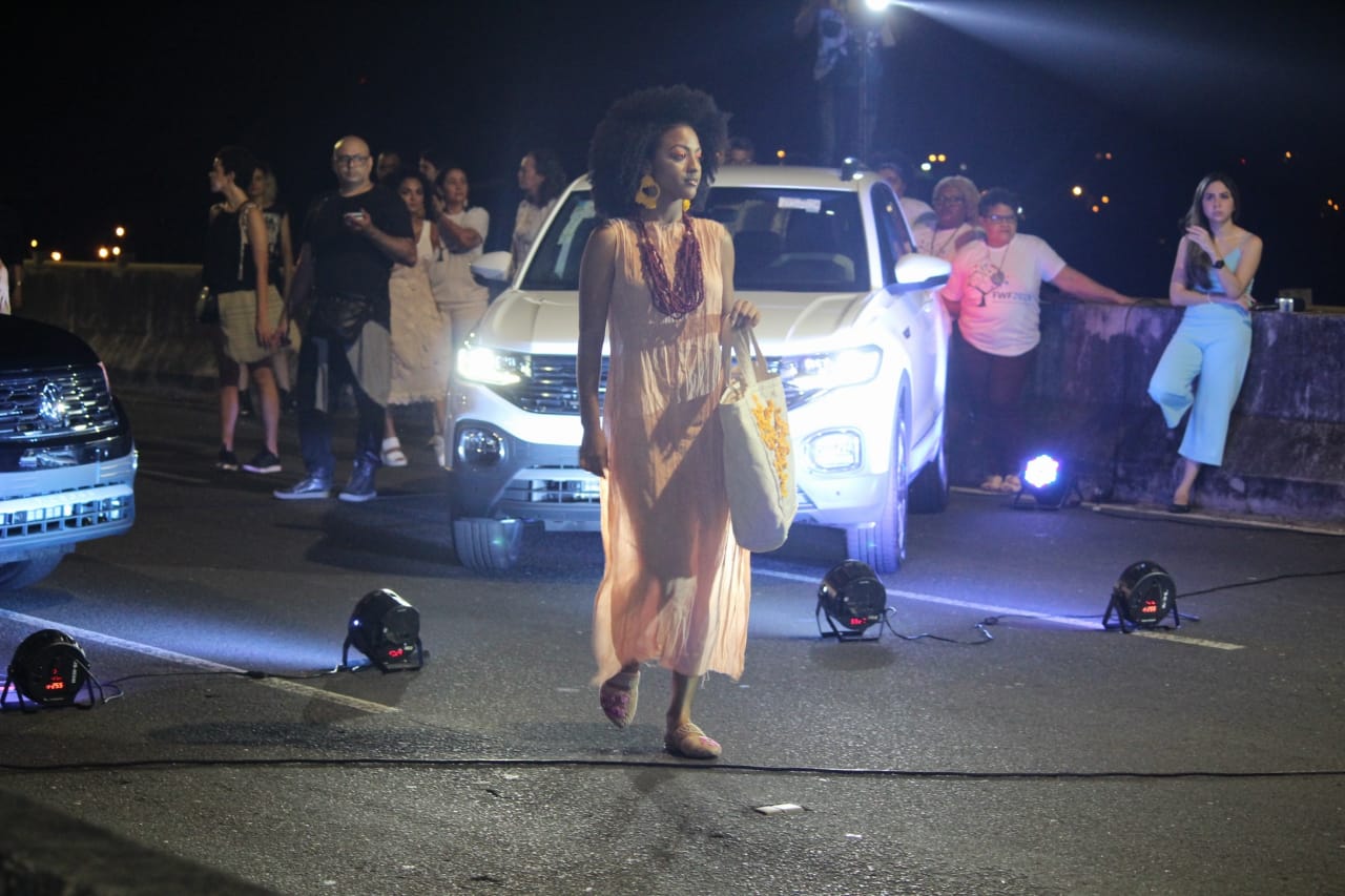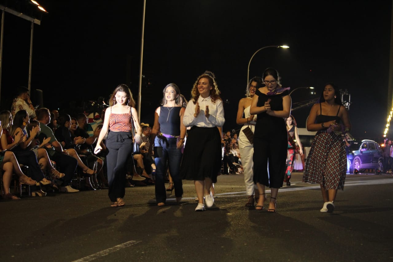 A Ponte Estaiada virou uma grande passarela na noite desta segunda-feira (13) para a abertura do Piauí Moda House.