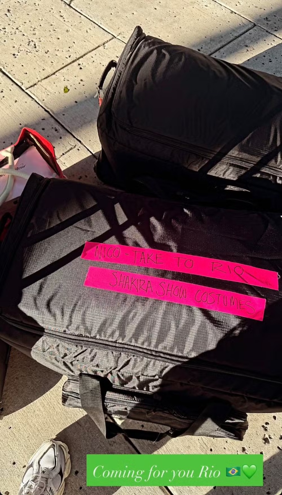 Antes do pedido, Nicolas compartilhou imagens de malas identificadas com etiquetas com as frases “Shakira show costumes” e “Nico - take to Rio”, indicando que as peças fazem parte da produção preparada para a apresentação.