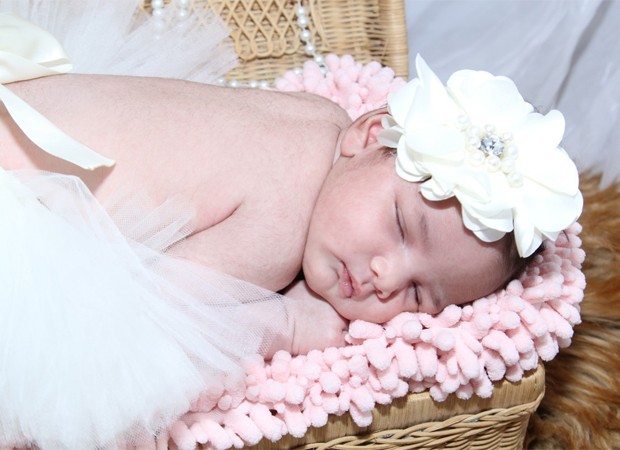 De acordo com Angélica, a bebê se comportou bem para as fotos. "A fotógrafa Tamylla Eiko tem uma mega experiência com recém-nascidos, o que me deixou super segura. Maria Laura deu um show de fofura com direito a xixi na mamãe e uma caquinha no pai. Minha mãe e meus filhos acompanharam o ensaio. Segundo dona Carmem Ramos, minha mãe, quando a criança faz xixi e sorte e o 'número 2' é dinheiro (risos). Vamos acreditar nisso. Vai que cola", diz, com humor. "Ela é super tranquila, igual ao pai. Espero que continue assim porque se puxar o agito da mãe..."