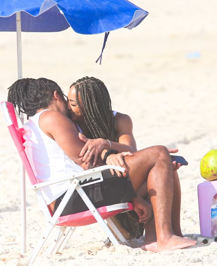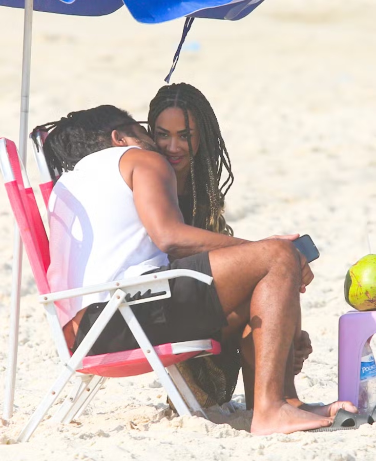 Aline e Diogo Almeida foram flagrados se beijando em uma praia na Barra da Tijuca, no Rio de Janeiro, nesta quinta-feira (22). O casal, que recentemente assumiu o romance, atendeu fãs e curtiu o dia de sol juntinhos. Ambos participaram da edição do BBB 25.