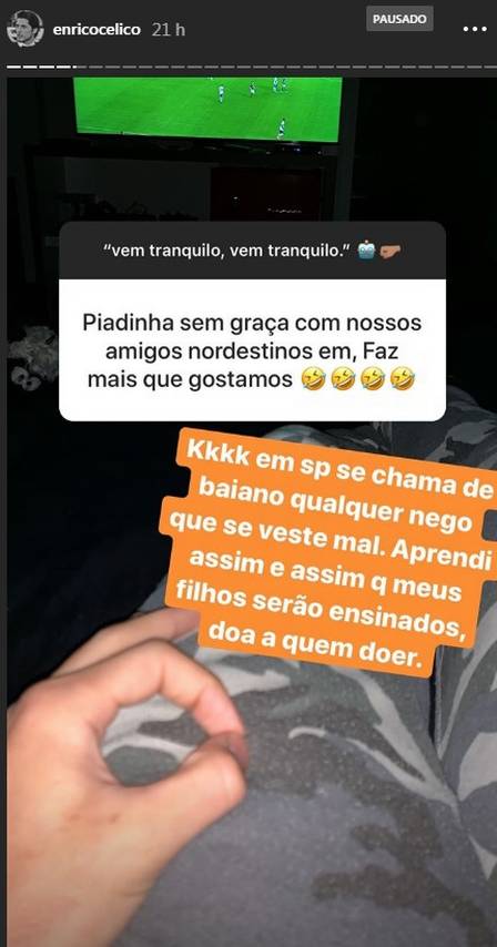 Após receber críticas nas suas redes sociais, Enrico respondeu uma pergunta de um seguidor sobre a polêmica: