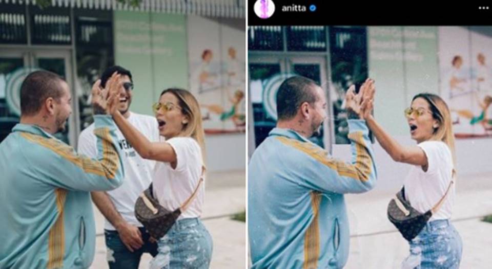 Ainda ontem, a cantora postou uma mensagem de aniversário para J.Balvin e usou uma foto antiga na qual estava com o cantor e o ex-marido - mas nas redes sociais, identificaram que Anitta apagou Thiago da foto original antes de postar.