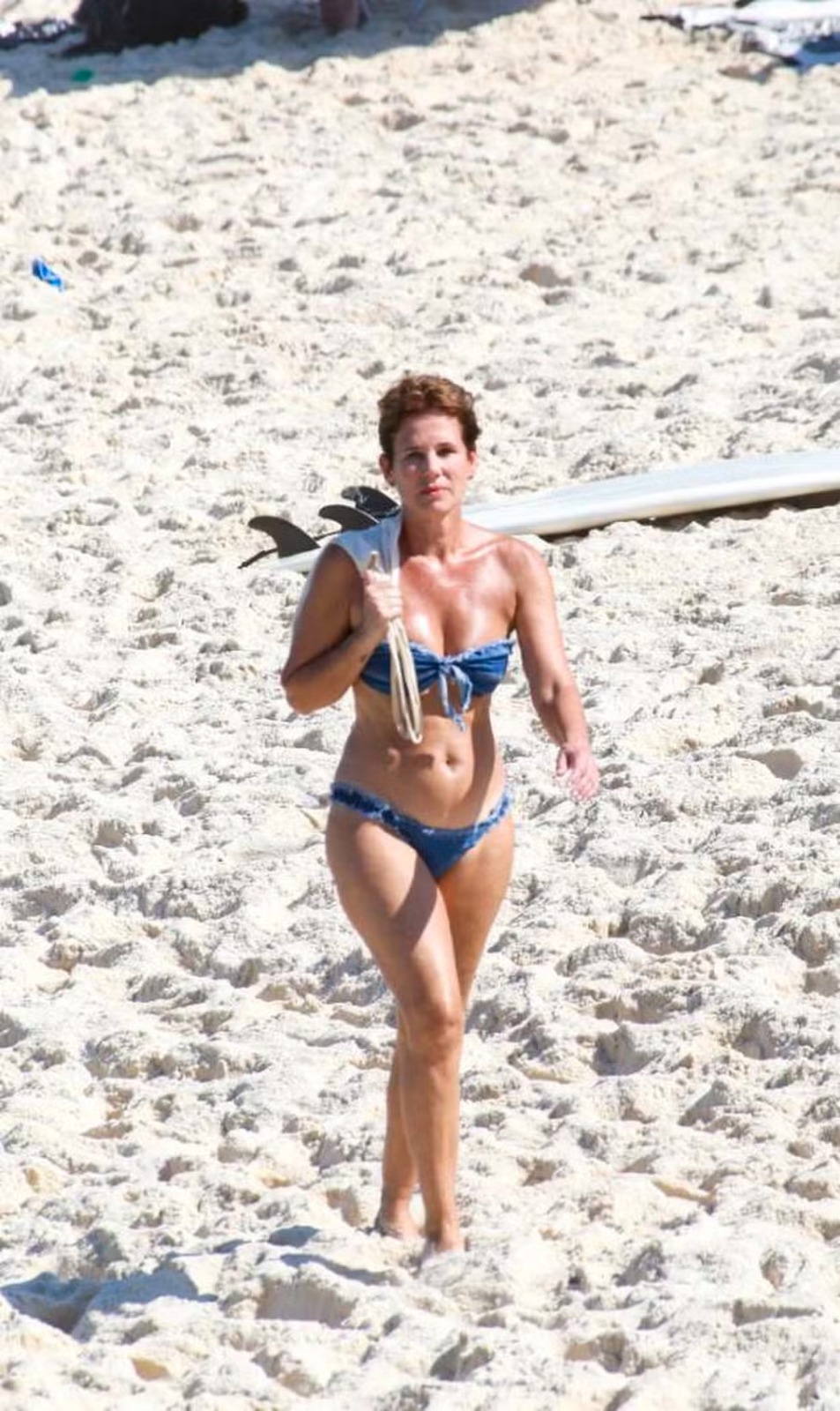 A ex-paquita Andréa Veiga, de 56 anos, aproveitou a manhã de sol nesta quarta-feira (01) para curtir a praia no Rio de Janeiro. A primeira assistente de palco de Xuxa chamou atenção ao usar um biquíni modelo tomara que caia em tom azul jeans, com amarração frontal e acabamento desfiado.