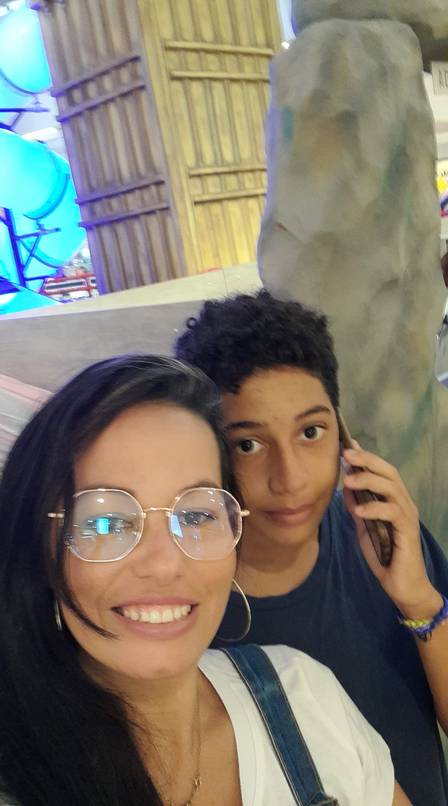 Thielle Ferrari Gomes e o filho