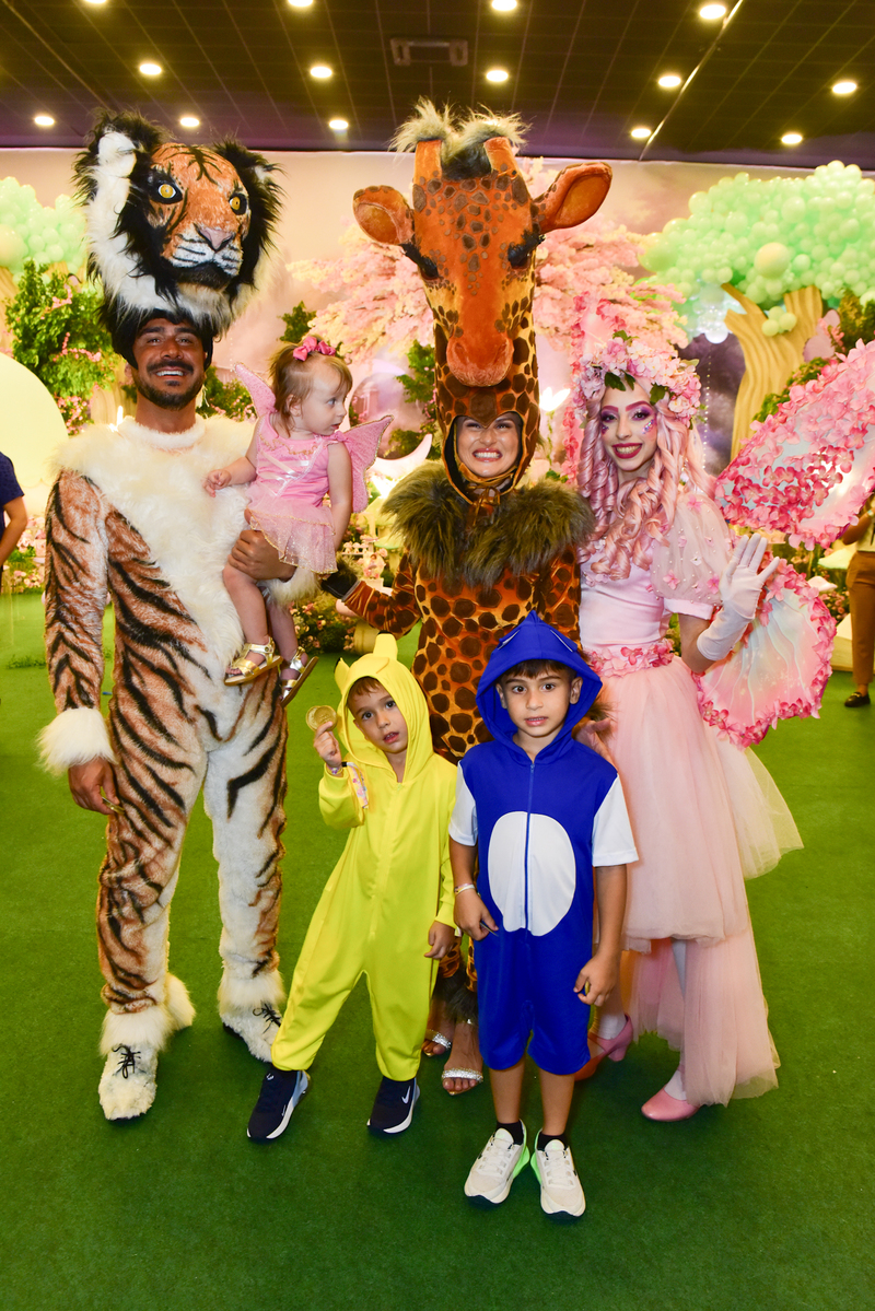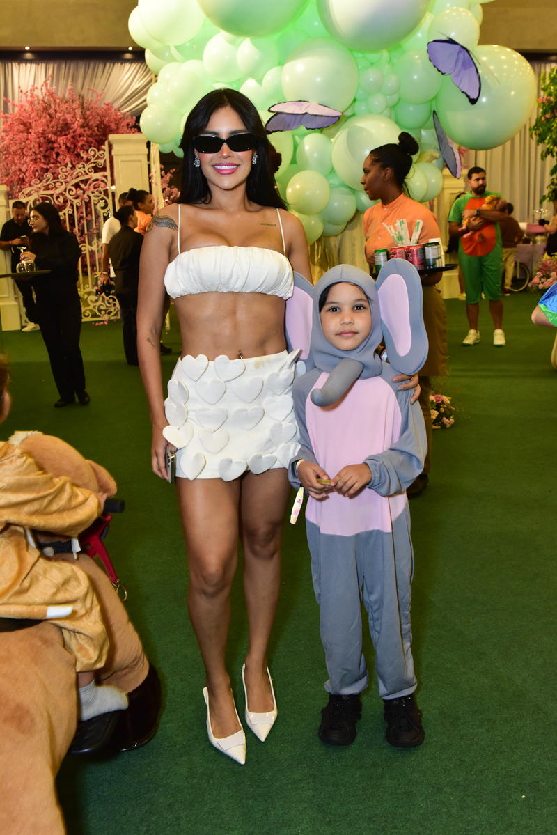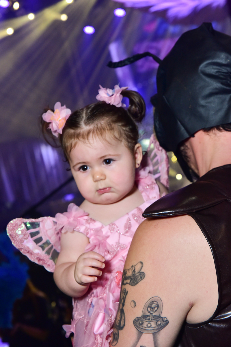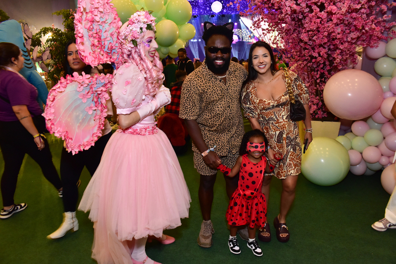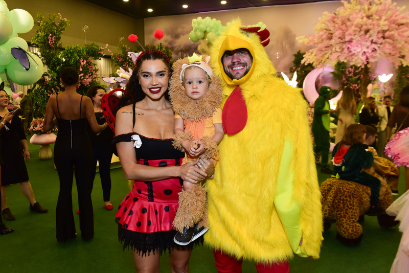 O casal de ex-BBBs se fantasiou de Rainha de Copas e Chapeleiro Maluco, personagens de Alice no País das Maravilhas. A aniversariante se vestiu da protagonista Alice e roubou a cena com sua fofura.