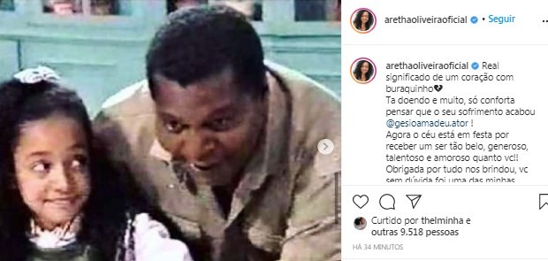 Aretha Oliveira, atriz: "Real significado de um coração com buraquinho. Está doendo e muito. Só conforta pensar que o seu sofrimento acabou. Agora o céu está em festa por receber um ser tão belo, generoso, talentoso e amoroso quanto você!! Obrigada por tudo nos brindou, você sem dúvida foi uma das minhas maiores referências naquele nosso mundo Chiquititas! Para sempre, sempre no meu coração."