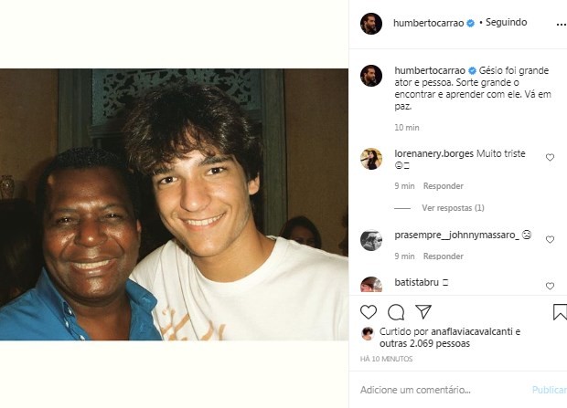 Humberto Carrão, ator: "Gésio foi grande ator e pessoa. Sorte grande o encontrar e aprender com ele. Vá em paz"