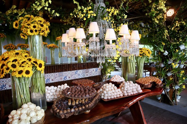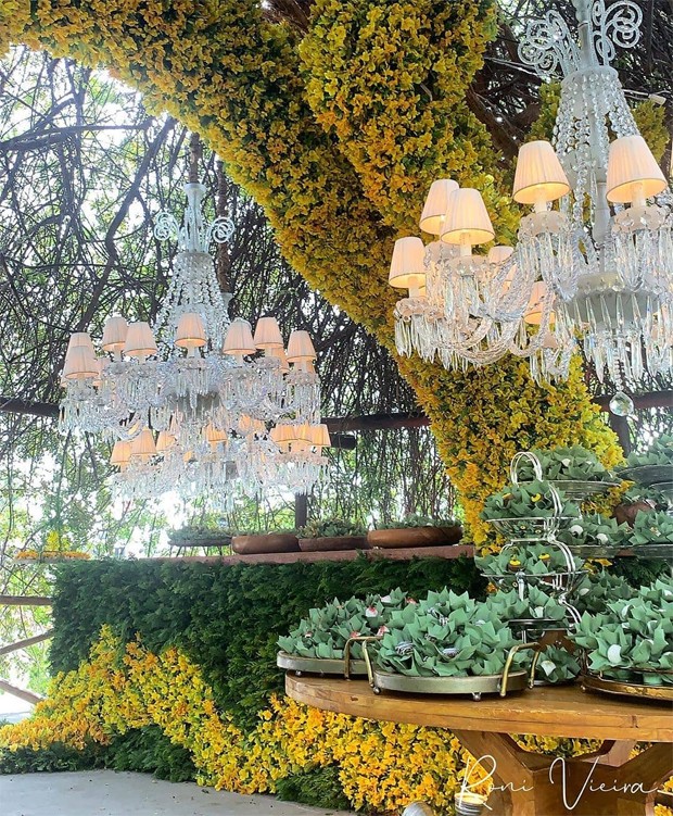 A troca de alianças aconteceu ao pôr do sol. O casamento, para 450 convidados, foi celebrado pelo poeta goiano Júlio César. Já a decoração ficou a cargo de Roni Vieira.