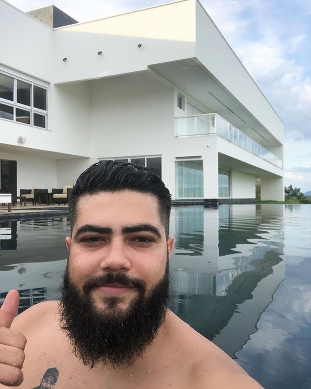 Henrique, da dupla com Juliano, deixou os fãs impactados ao publicar no Instagram uma foto em que aparece na piscina de sua mansão, provocando comparações com Gusttavo Lima, que também ostentou sua fazenda. Com um sinal de joinha, ele posou tranquilo para a selfie, mas o que chamou atenção dos seguidores foi o tamanho da propriedade, uma construção de dois andares, com janelas de fora a fora, pé direito alto e varandas espaçosas, além, claro, do espelho d'água ocupando boa parte do local.