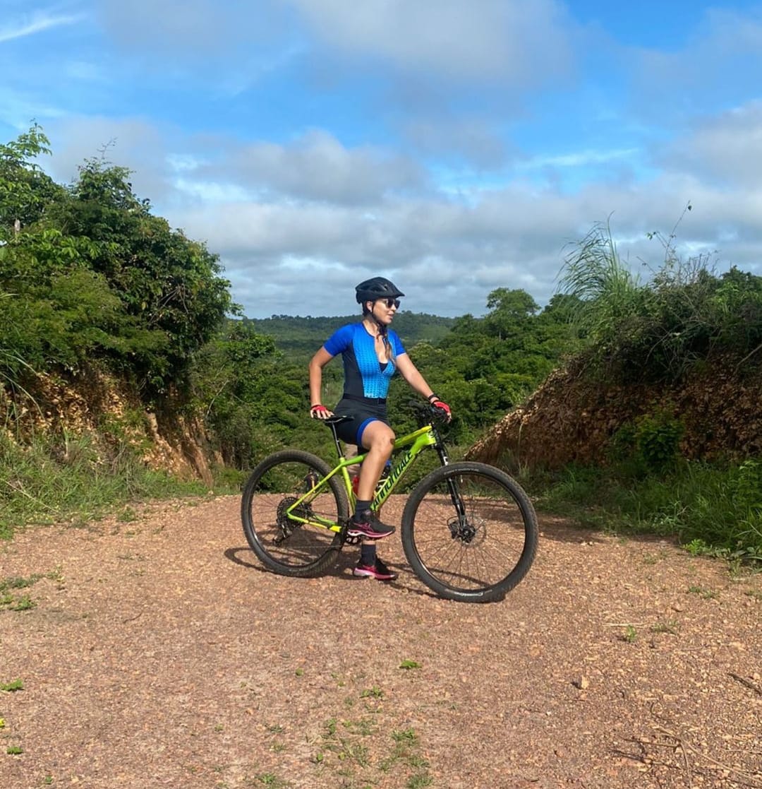 A empresária Jardel Nogueira aproveitando para praticar ciclismo. Ela já faz percurso de 43 km